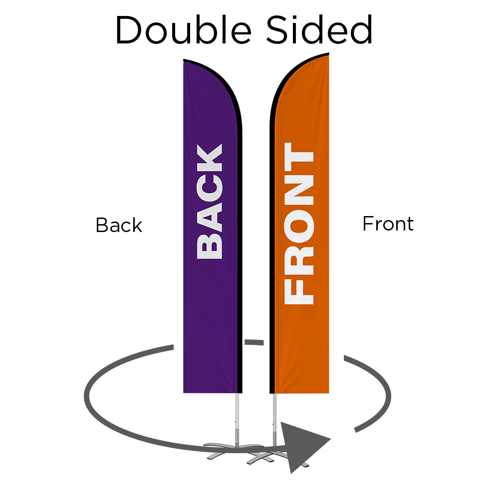 Full color printing on one side, with grommets and hems. 13oz vinyl.